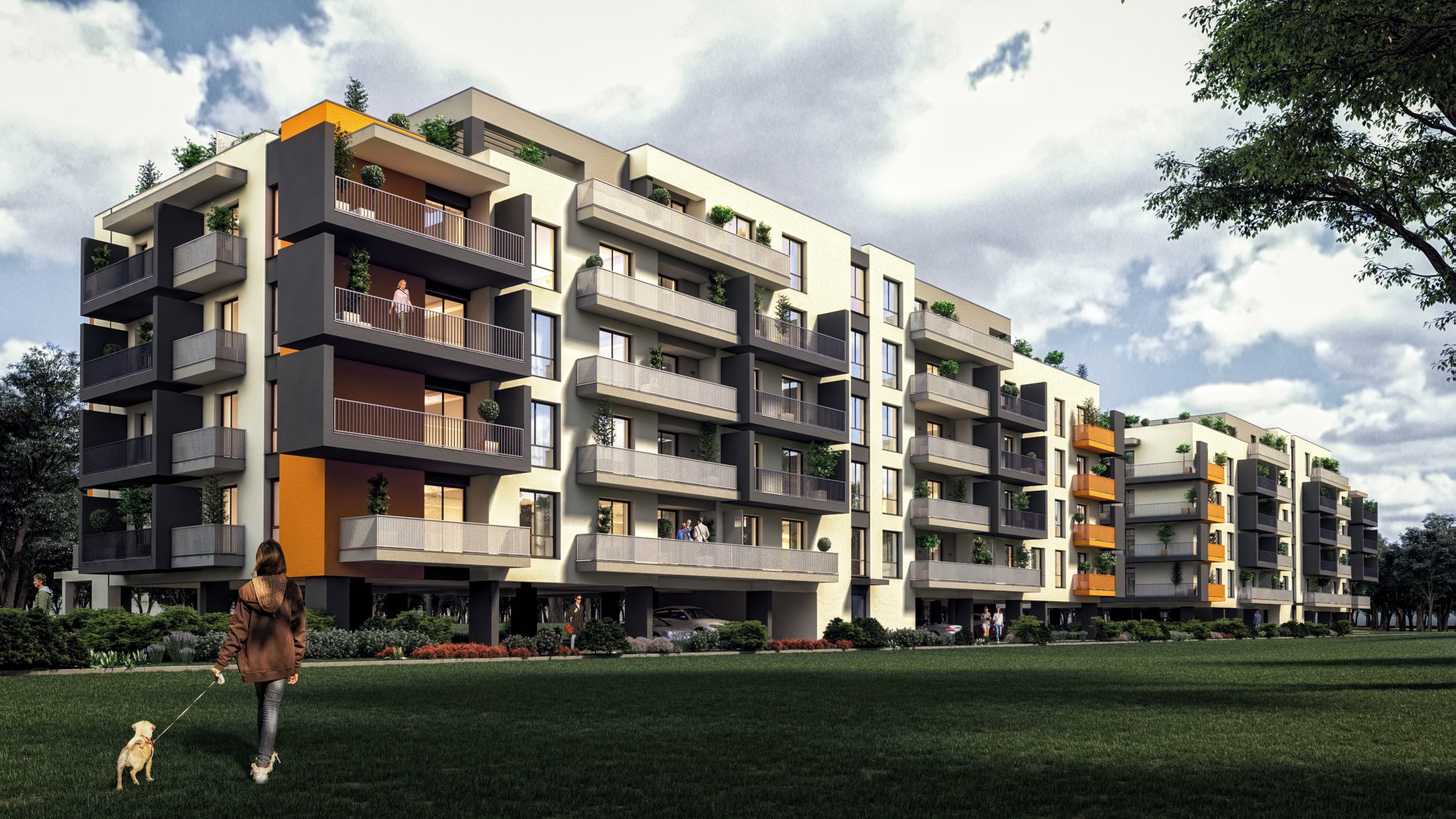 Ansamblul rezidential ofera pentru fiecare locuinta locuri de parcare situate la parterul cladirii sau in curtea interioara unde se gasesc si locurile de joaca pentru copii, zona de relaxare si spatiul verde.